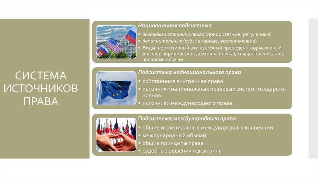 Национальная подсистема• основные источники права (приоритетные, регулярные)