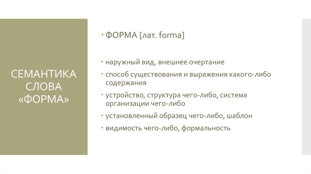 ФОРМА [лат. forma]наружный̆ вид, внешнее очертание