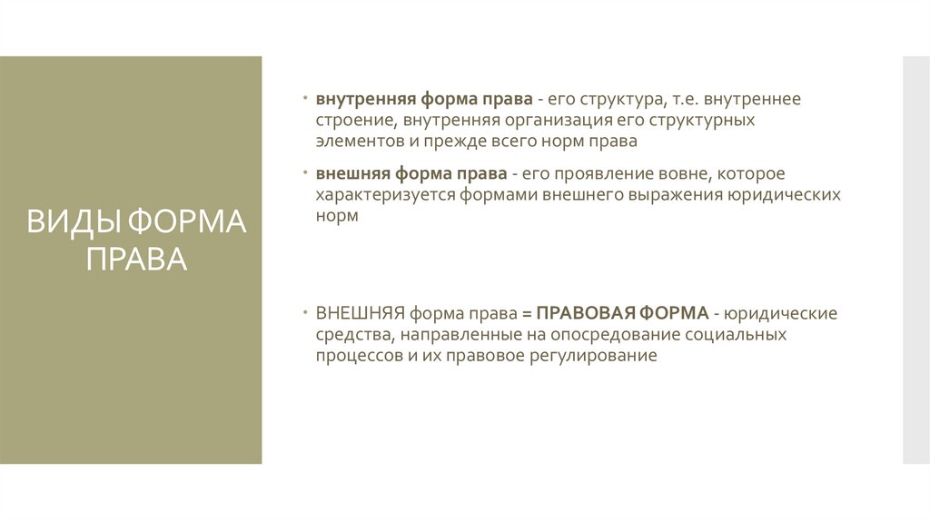 ВНЕШНЯЯ форма права = ПРАВОВАЯ ФОРМА - юридические