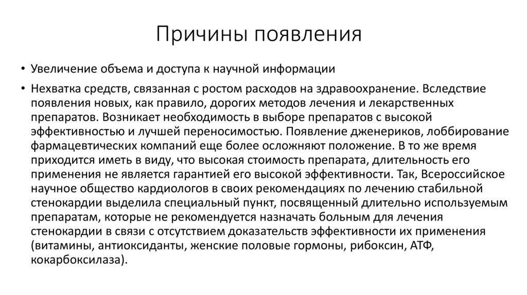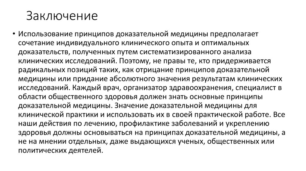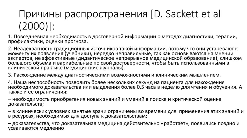 – доказательства, что доказательная медицина действительно «работает», появились поздно и