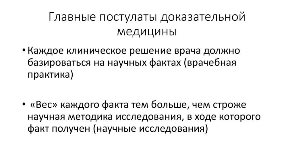 • Доказательная медицина (evidence based medicine) - конец 1980-х