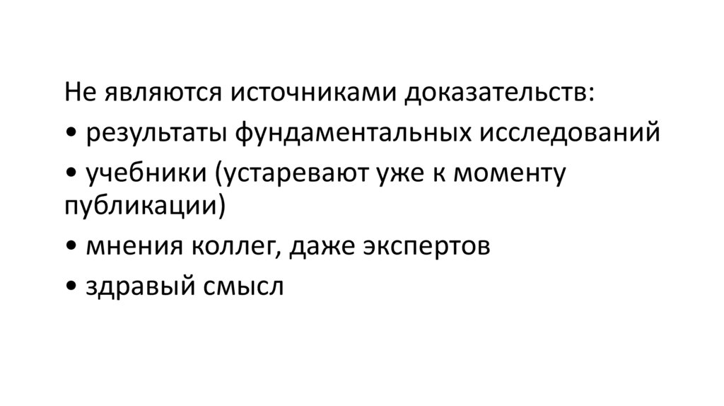 Не являются источниками доказательств:• результаты фундаментальных исследований